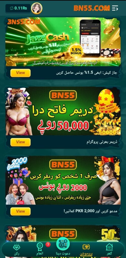 Online earning apps are becoming very popular in Pakistan, and one of the latest names making waves is BN55 Game. Launched recently, this app combines entertainment with real earning opportunities. With casino-style games such as slots, Teen Patti, Rummy, and Poker, it attracts thousands of users daily. What makes BN55 different from other platforms is its easy registration, local payment support (Easypaisa & JazzCash), Urdu friendly interface, and reliable withdrawals.